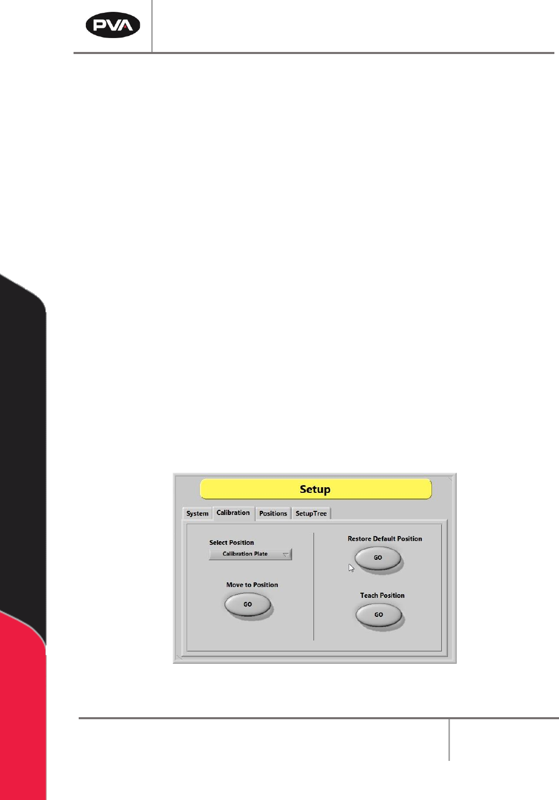 PVA Portal Manual Revision I / Janua ry 2022 Page 41 of 106 Note : For a calibration pla te, each valve tip should ali gn with the crosshair cent er point. If it does not, physica lly move th e valve until it does. This …