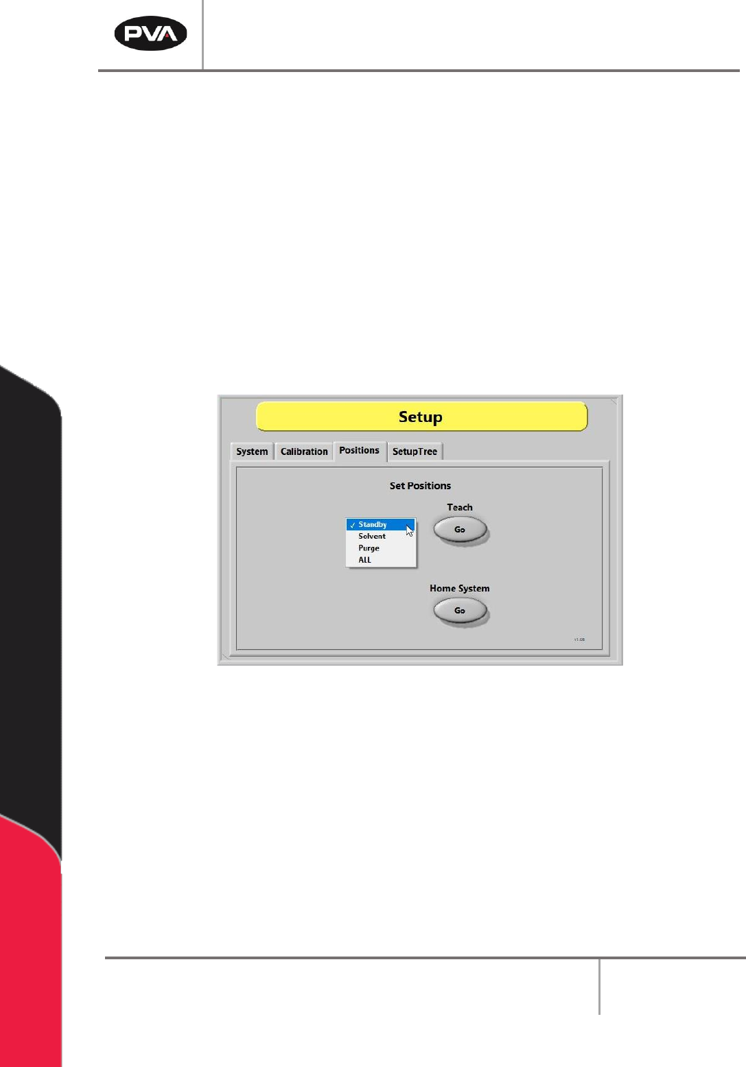 1. Select the appropriate position option (e.g., Standby, Solvent, Purge, or ALL).