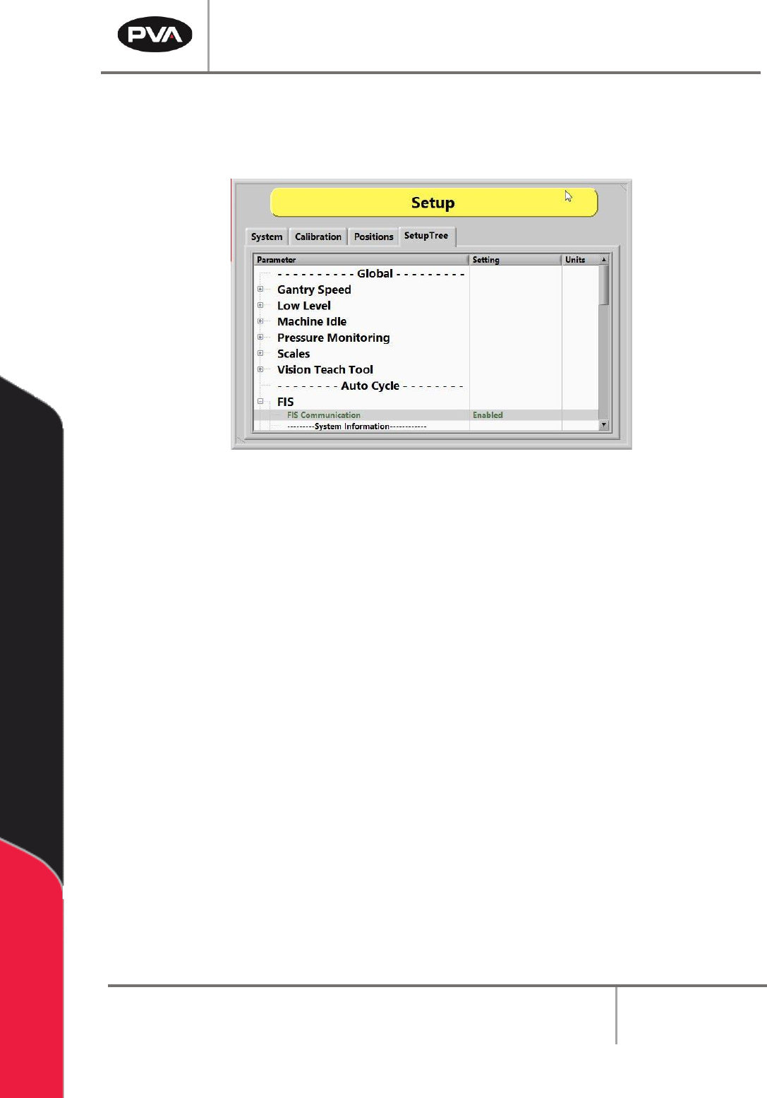In the FIS option of the SetupTree tab, the FIS Communication can be either enabled or