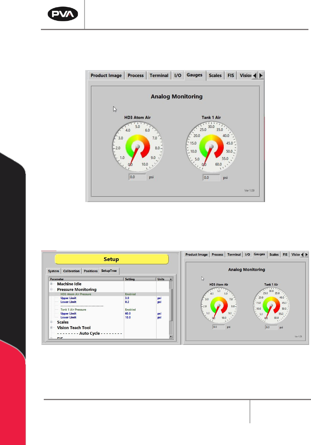 If enabled, the Gauges are typically monitored in the SetupTree tab.