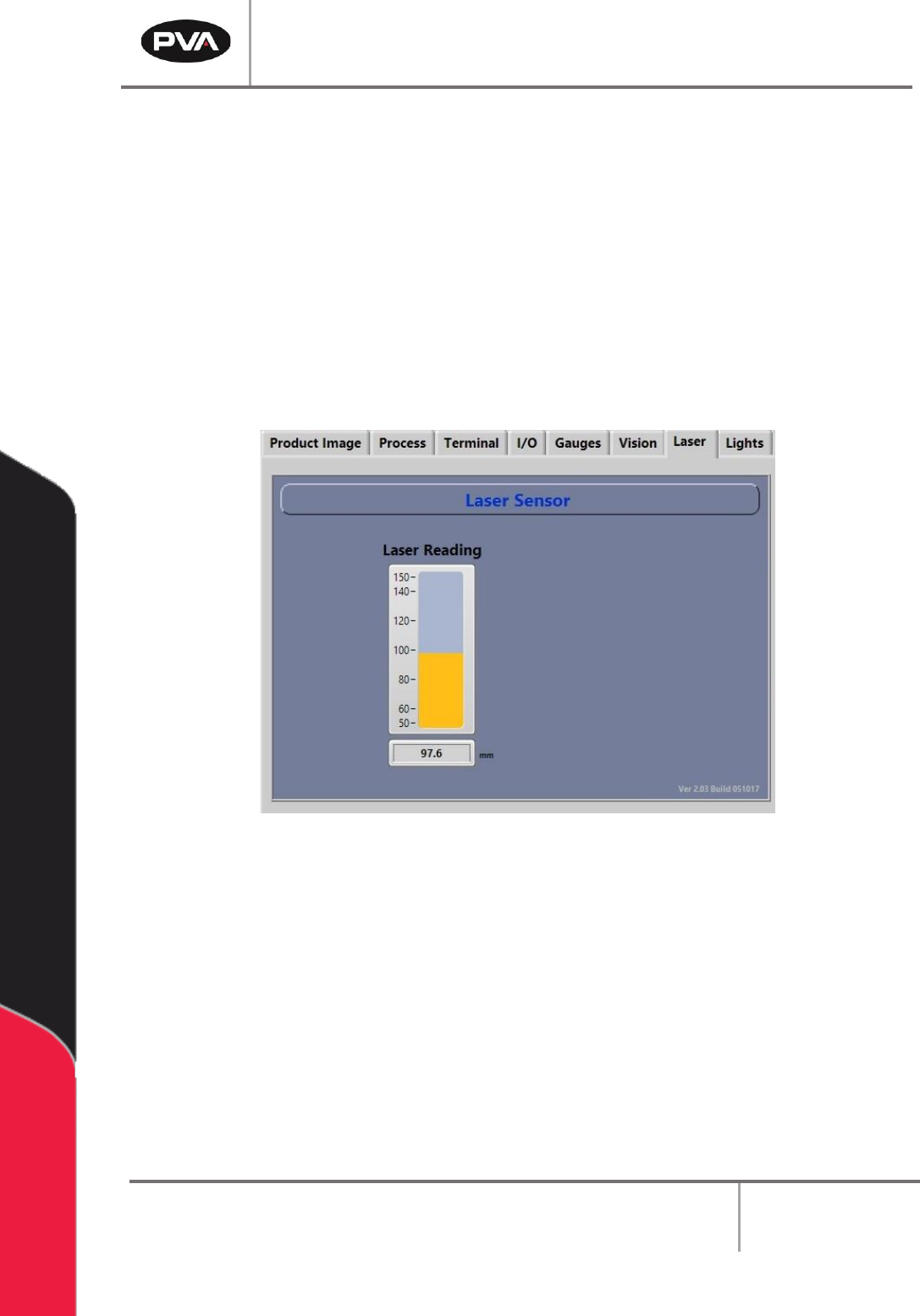 PVA Portal Manual Revision I / Janua ry 2022 Page 64 of 106 9.7 FIS Refer to Sectio n 6.8.2 for mor e information on FIS. Note: This is no t a standard option on all ma chines. 9.8 Laser The Laser tab sh ows the curre nt…