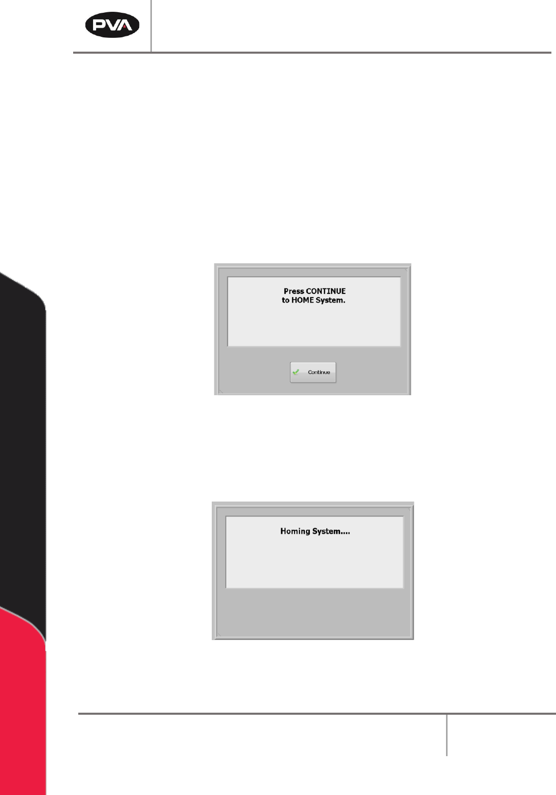 1. Select the “Continue” button to home the system.