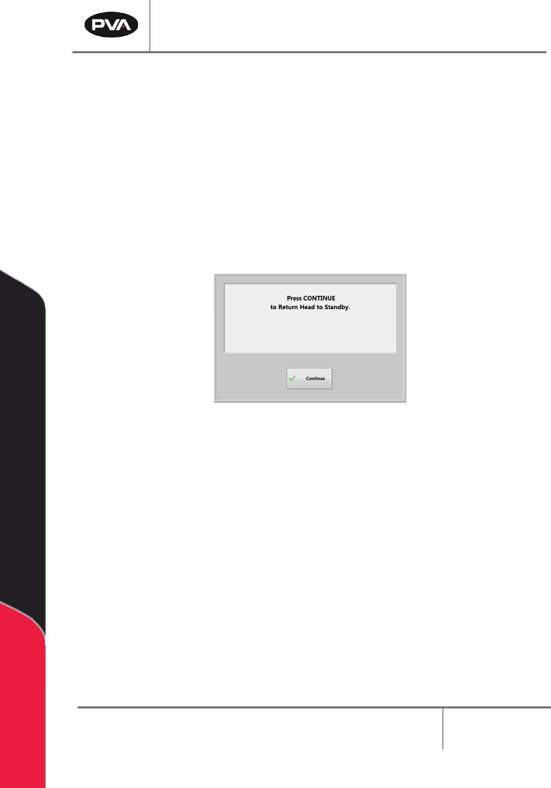 PVA Portal Manual Revision I / Janua ry 2022 Page 71 of 106 10.5 Standby Posi tion The end effe ctor will m ove to the Standby Po sition when th e homing s equence is complete, all c alibration pro cedures ar e complete,…