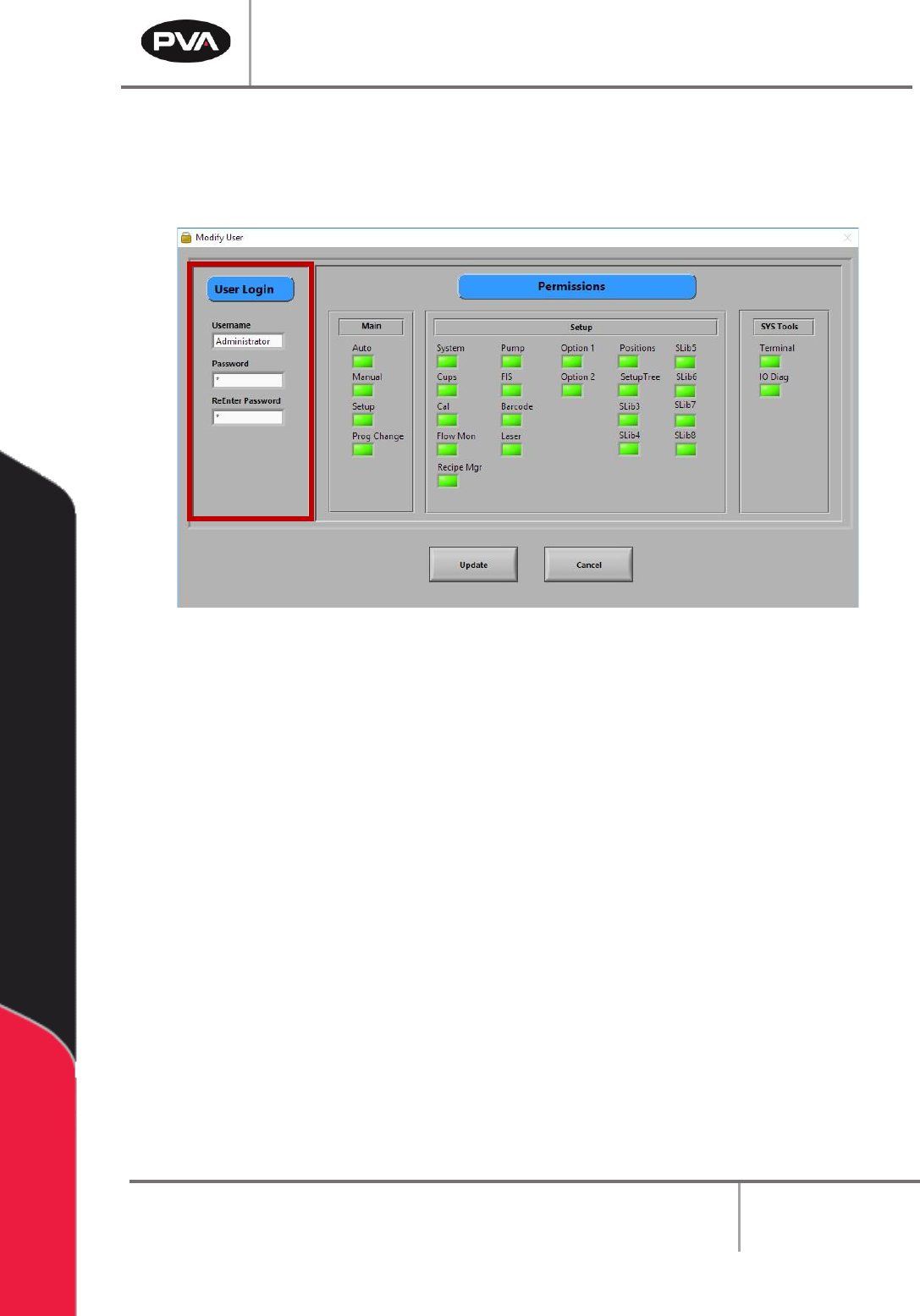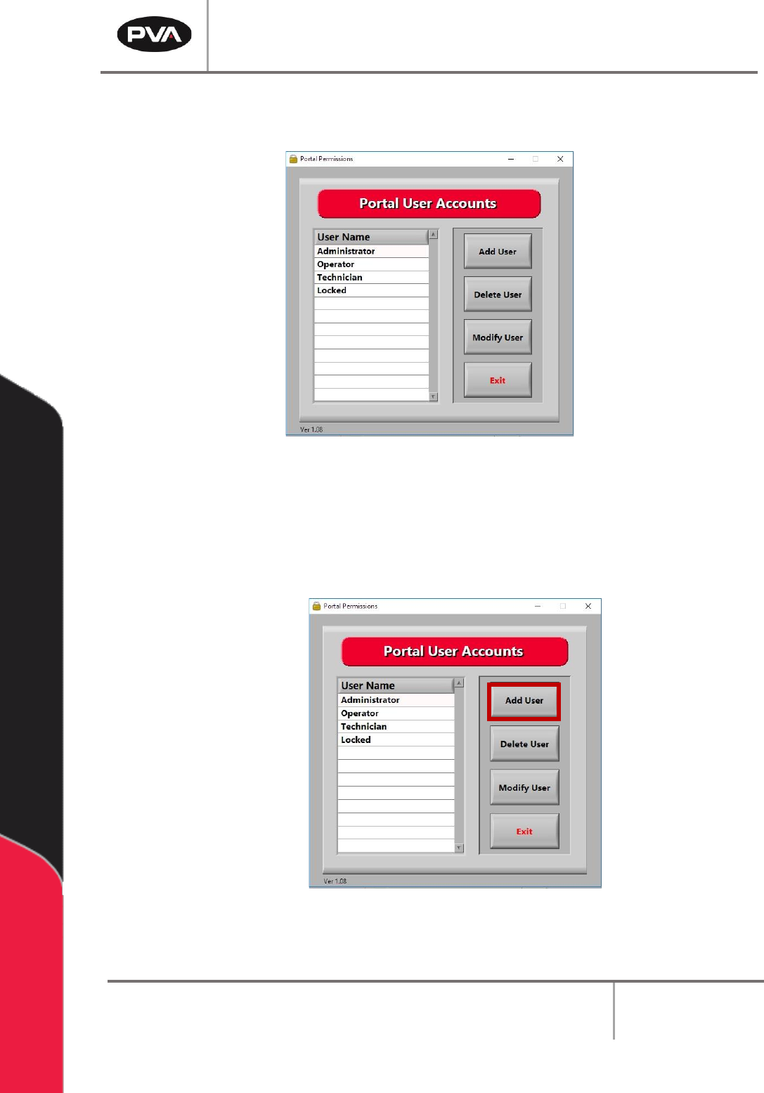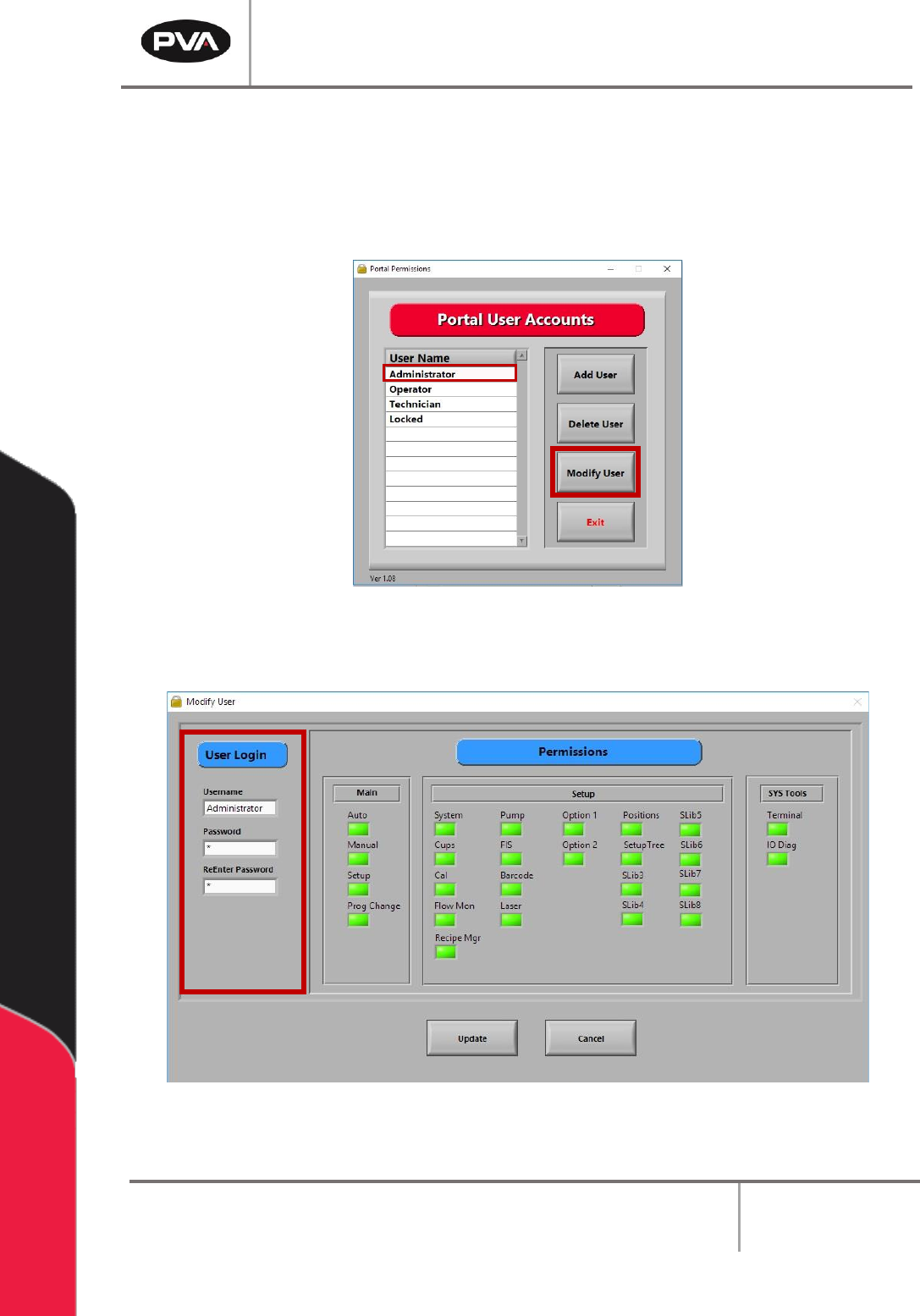 PVA Portal Manual Revision I / Janua ry 2022 Page 75 of 106 2. U nder User Login , type the Usernam e, Passwo rd, and re - enter the Password. 3. Select the correct Permi ssions for each us er by clicking on the related …