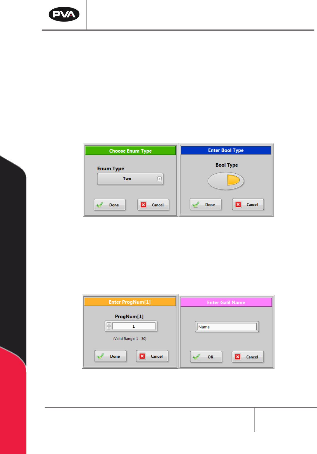 Figure 106: Enter ProgNum and Enter Galil Name Windows