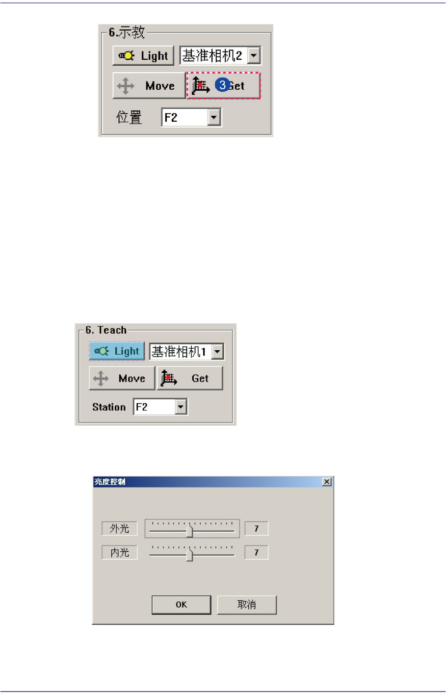 设定识别部品用Fiducial 照相机的照明度。按下此按钮时,显示以下画面。