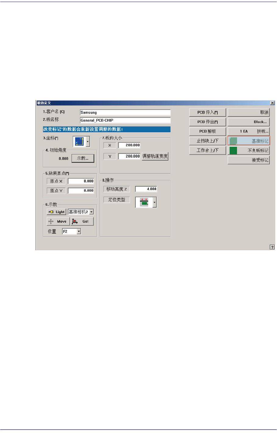 PCB上有基准点标记时,设定基准点标记的位置和标记的数据。