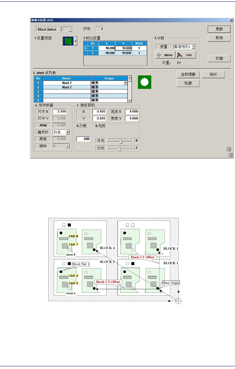 PCB上有基准点标记时,设定基准点标记的位置和标记的数据。