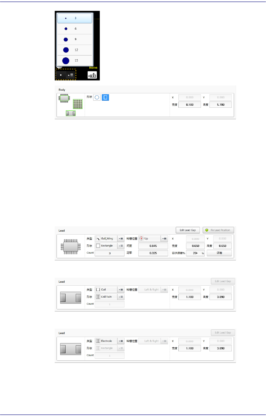 下面是引脚类型为Gull Wing、J Lead、Land的情形。