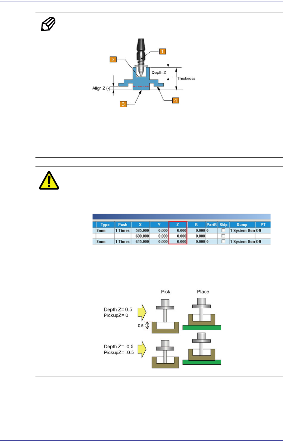 注 意 设定了Z深度(Depth Z)时就会反映到自动吸附高度(Pickup Z),