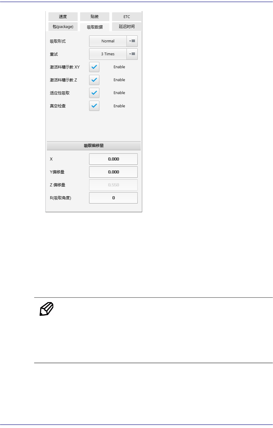 2. 如果是联动的头部,吸取元件时R值要相同。