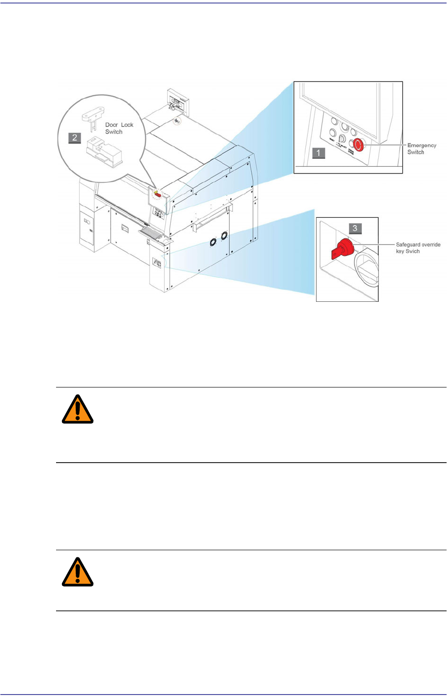 警 告 紧急停止状态下关闭设备所有伺服马达的的电源,但其他电源部