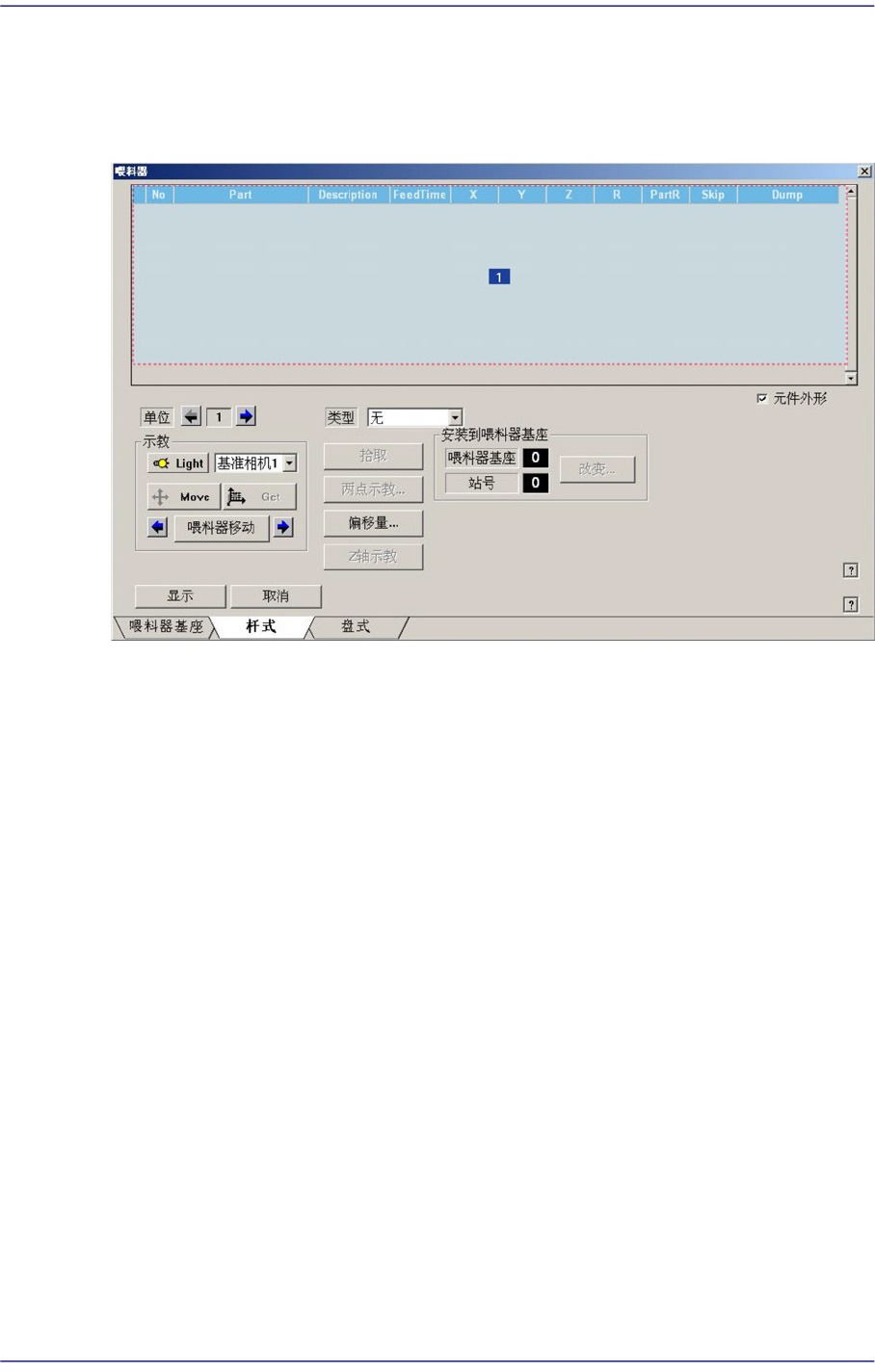 图象显示实际设置在Feeder Base的喂料器形象。