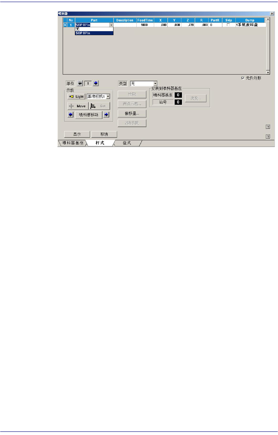 该Slot上装有管式喂料器时,设定吸附Stick Feeder供给部件的Z位置。