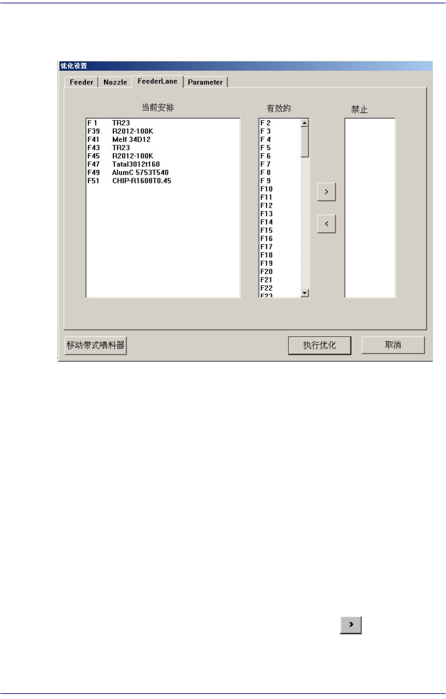 显示在<禁止布置>目录框的喂料器底座插槽则optimizer不布置任何装置。点击