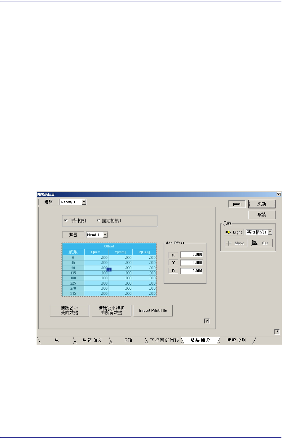 可删除选择摄相头相应的所有磁头的贴装偏移数据。