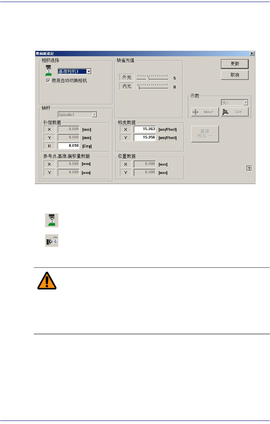 设定有关摄象机校准(照相机校正)的数据。其数据可以直接设定,也可以利用