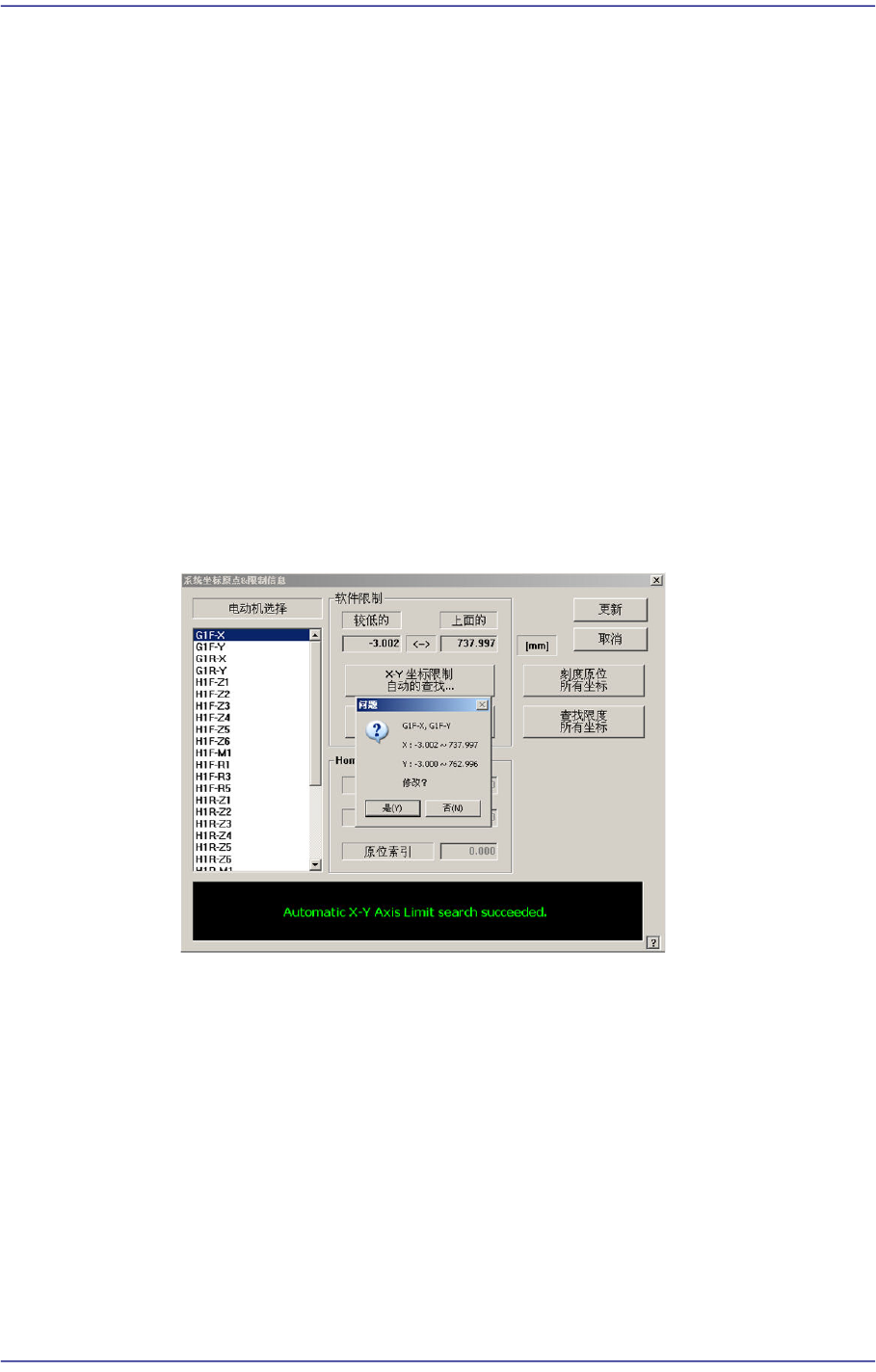 自动查找XY轴的limit后,确认是否运用变更值。