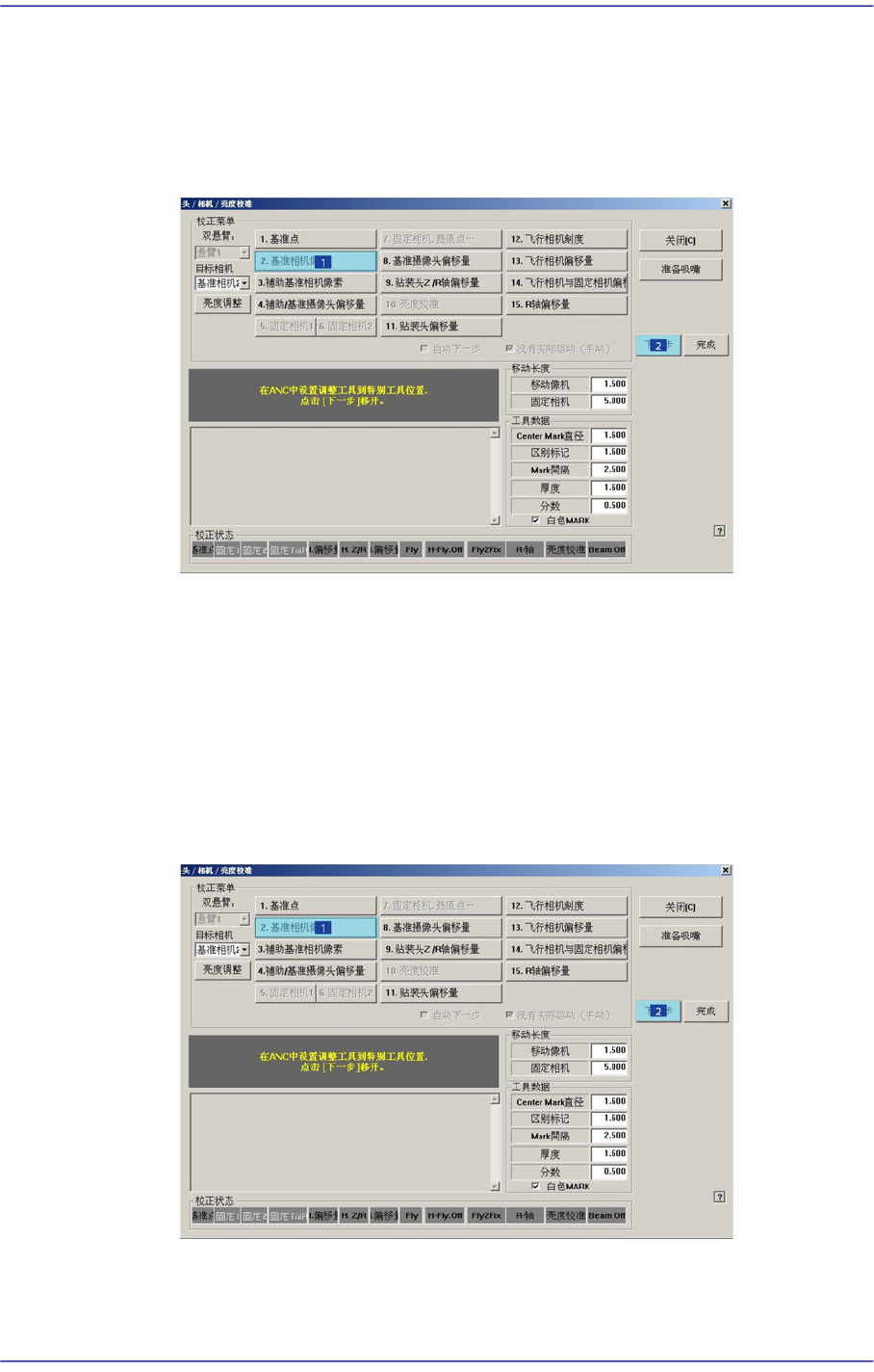 ANC的 Fiducial Mark位置,请点击 <下个>按钮。 这时,前面ANC的校正