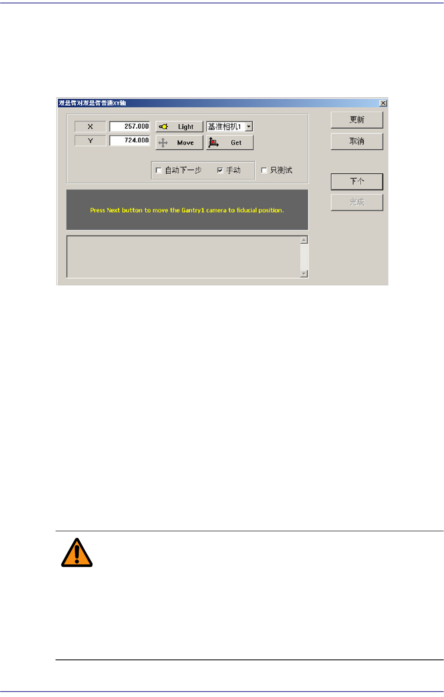 选择此选择框后点击<下个>按钮自动执行各Gantry间坐标系一致化的过程。