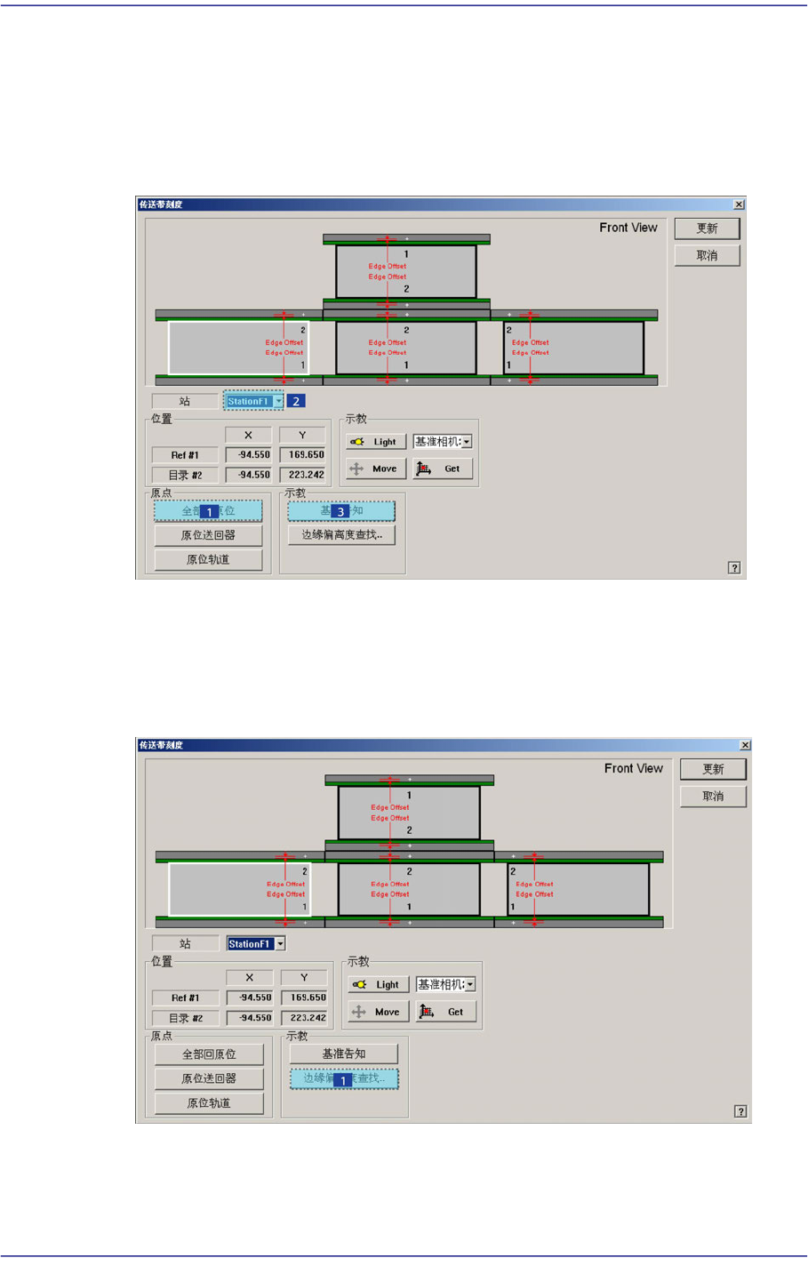 1. “Conveyor Calibration” 对话框的 单击<全部回原位> 按钮。