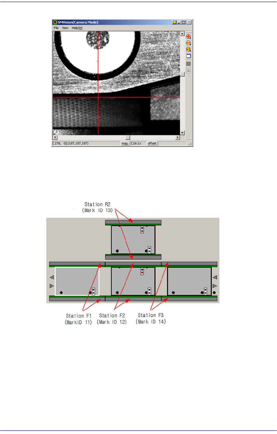 13-31 Machine Cal ibration 12. 对 所 选 S ta tion 的 Fiducial Mark 完成示教, 则用同样的方法对其他 Fiducial Mark 执行示教。 13. 2 到 12 号的过程各 Station 要单独执行, 请按如下的顺序执行 : StationF1 -> S tati onF2 → S tationR2 → StationF 3 F1_Ref#2