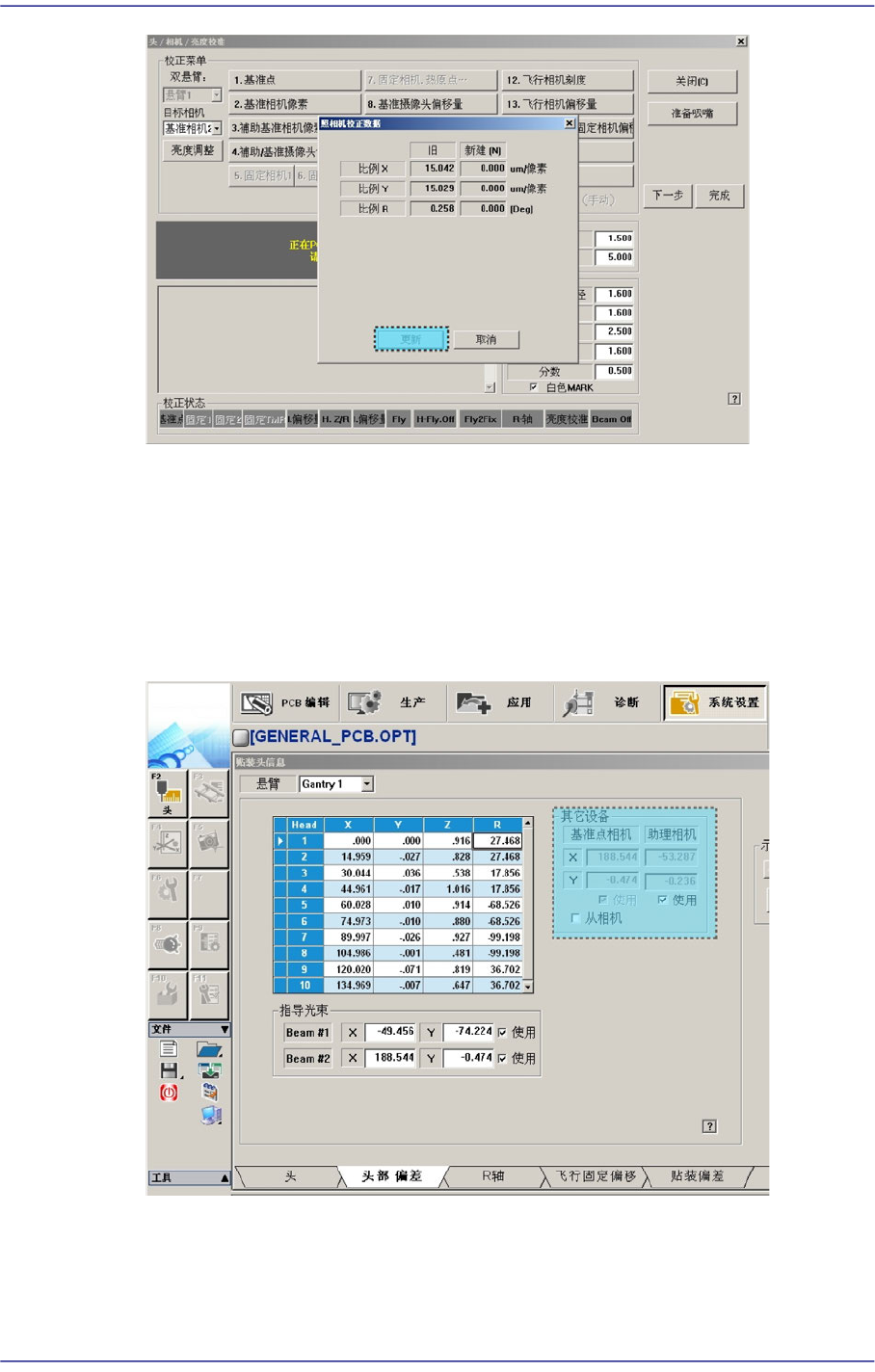 测量基准相机的中心到各Gantry的第一个Head(Head 1, Head11)间的Offset。
