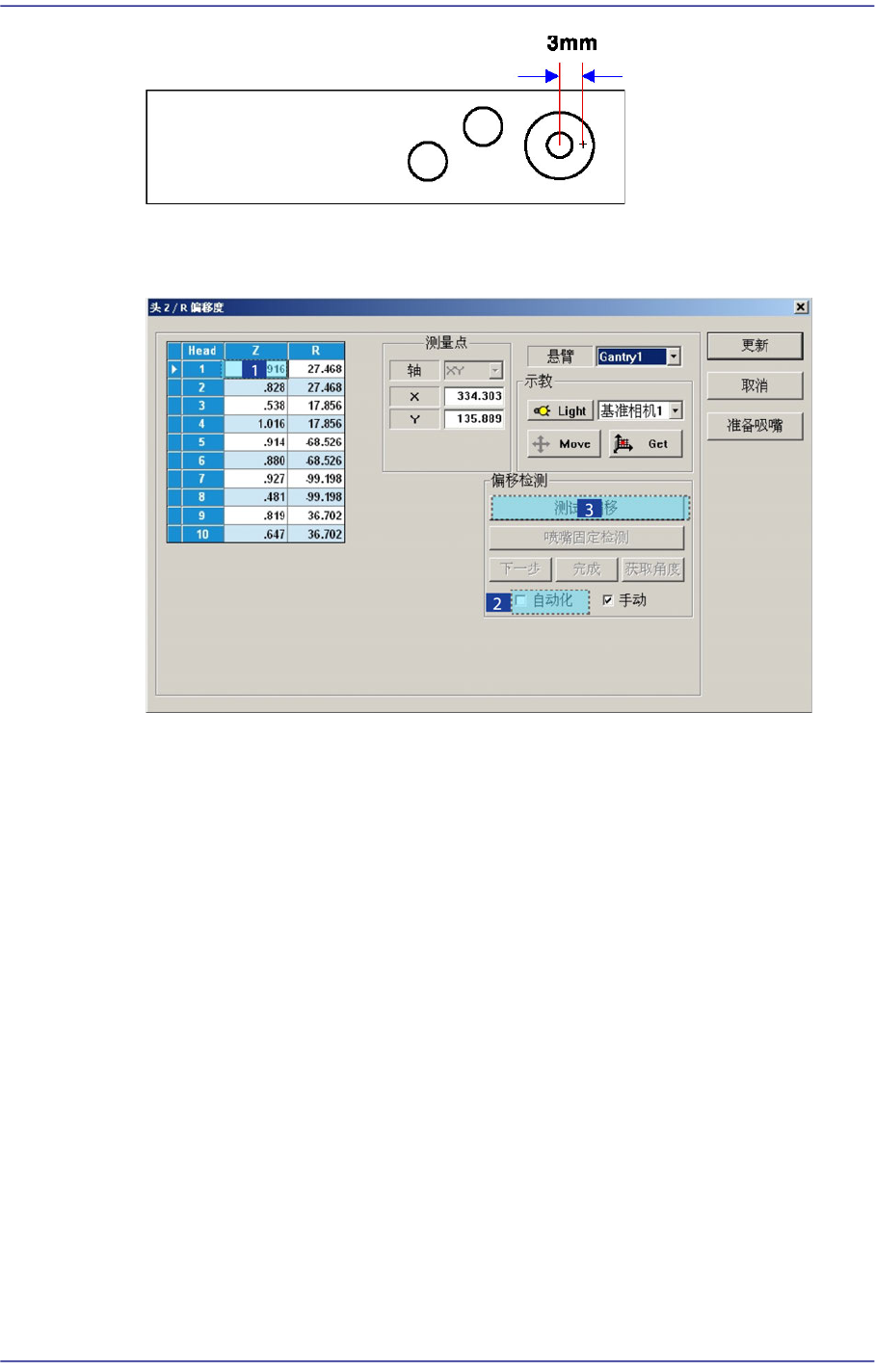 R Offset 校正为以吸嘴支撑架0度基准进行整列,测量对角度的Offset。