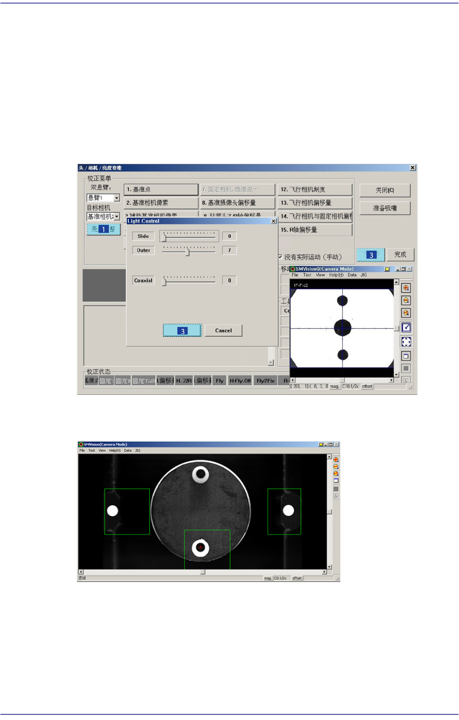 7. 校正首先识别Head的Reference Fiducial Mark测量飞行相机的R Offset。之后用