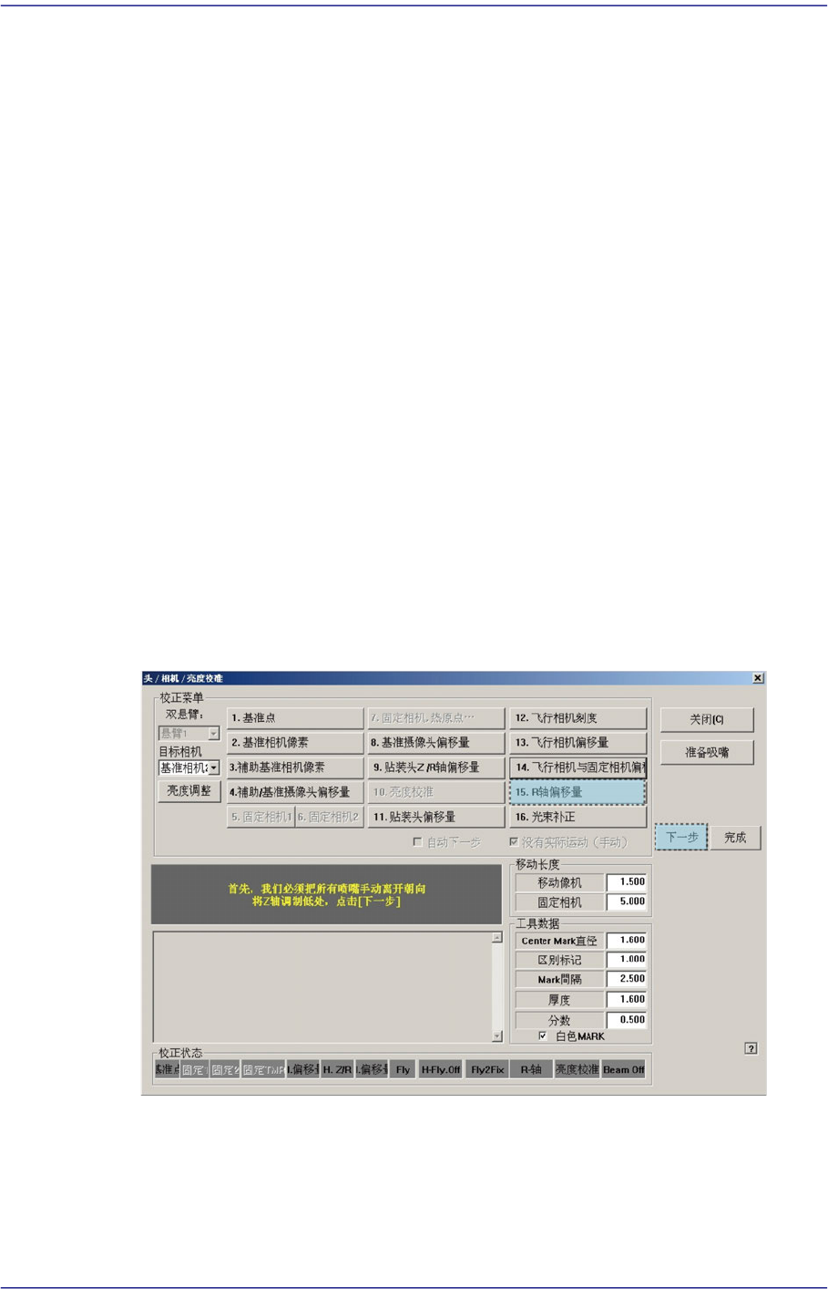 选择<15. R-Axis Offset>按钮则显示”首先,我们必须把所有吸嘴手动离开朝