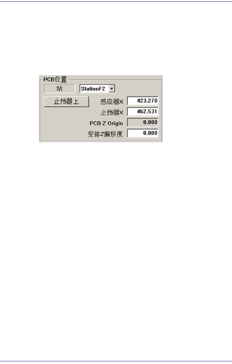 在选择的Staiton中设置PCB感应传感器的坐标值。