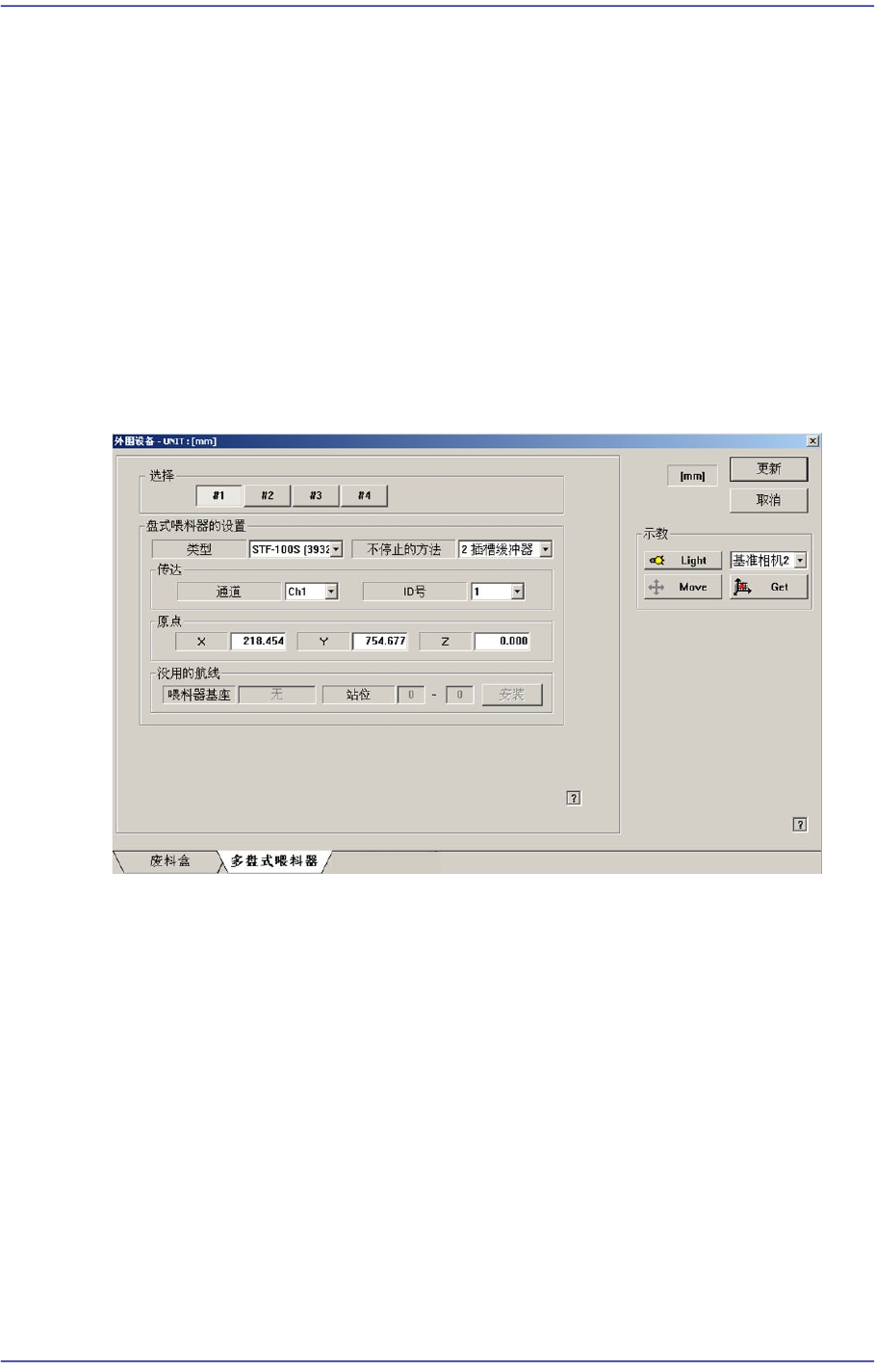 使用已选择的盘式喂料器单位时,设定被该盘式占有的喂料器基座单位和Slot。