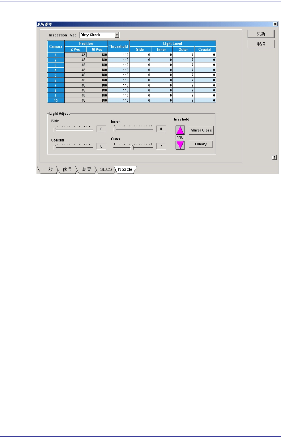 针对识别吸嘴尖头污染程度的视觉的Threshold进行设置。