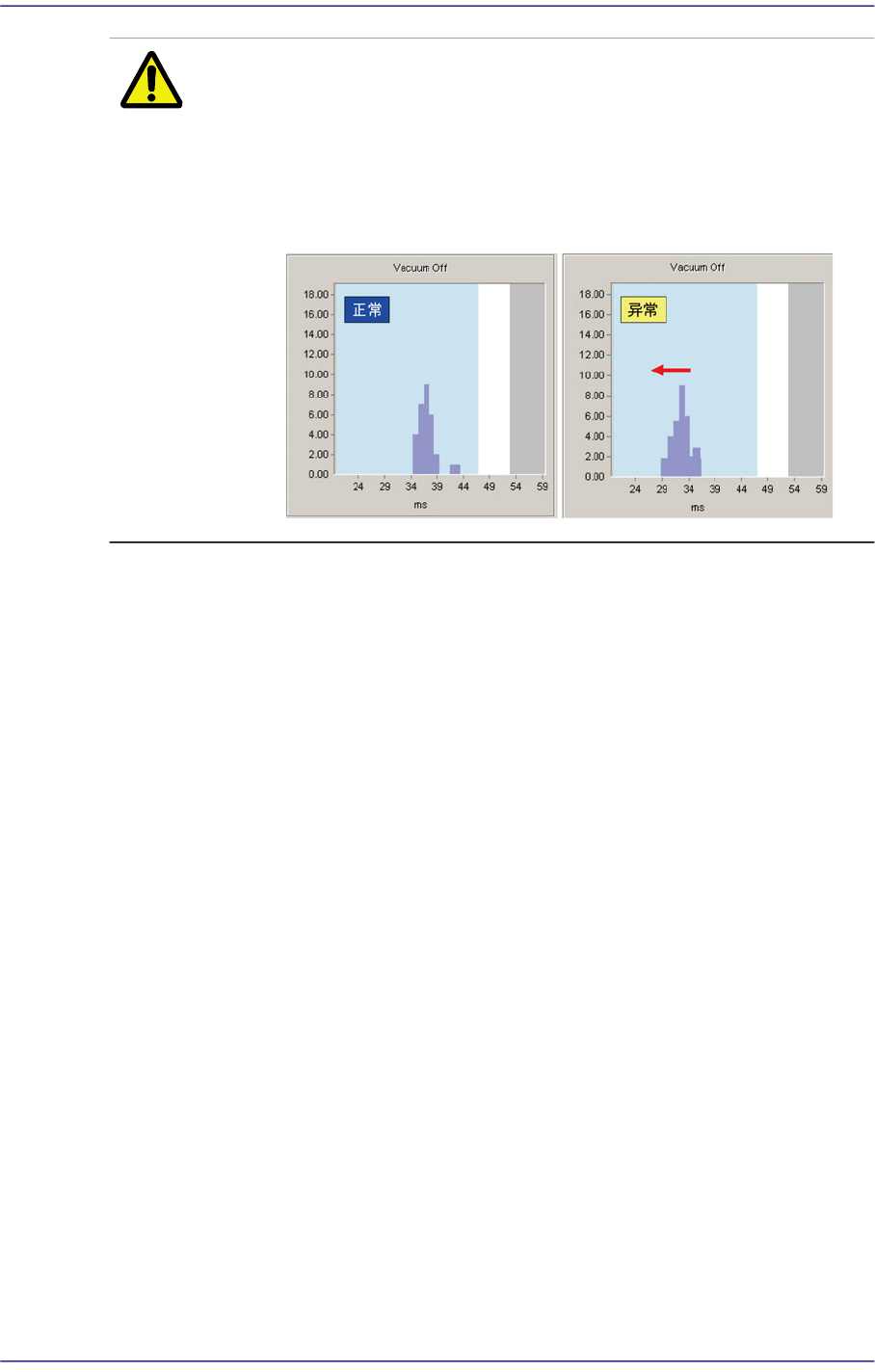 15-14 Fast Chip Shooter SM471 PLUS Admini st rator’s Guide 注 意 真空过滤器 (Vacuum Filter) 的清扫越是不良, 越会提早出现破坏 真空 ( Vacuu m Off) 的现象。 如下图所示, 以平均值为基准, 如果 结果值偏布于左侧就更换真空过滤器。 否则, 电磁阀会受损而最终影响到设备性能 ( 真空过滤器 : 更换周 期 6 个月 ) 。 <Close…