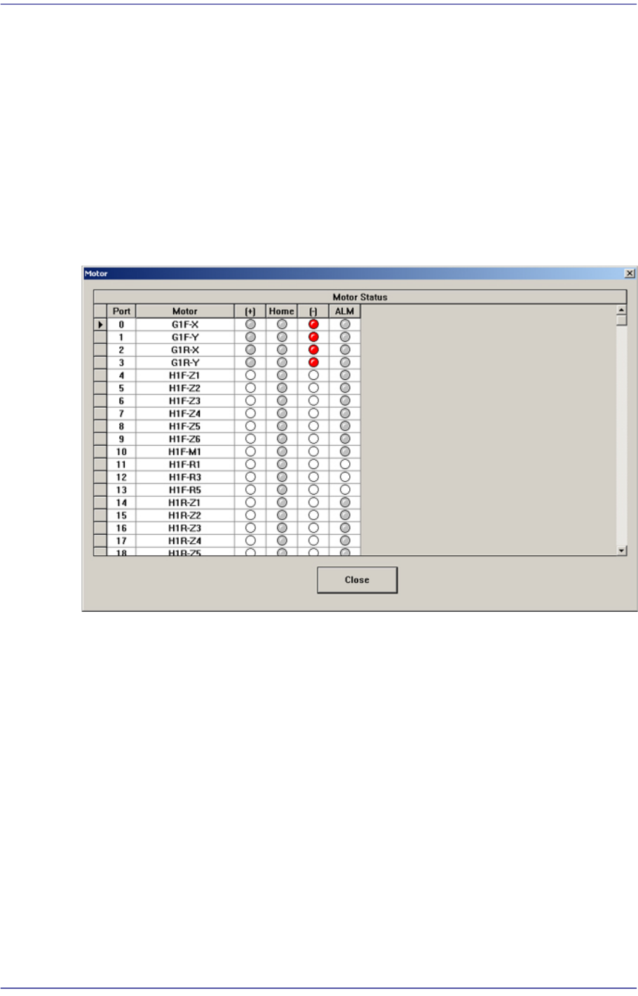 15-17 Diagnosis( 诊断 ) < 完成时间 > 静态 框 表示处理命令 (指令) 所需 要的时间。 <Close> 按钮 不适用变更事项终止相应对话框。 15.7. Motor IO [F9] 显示与驱动电动机有关的传感器输入状态。 图 15.10 “ Motor” 对话框