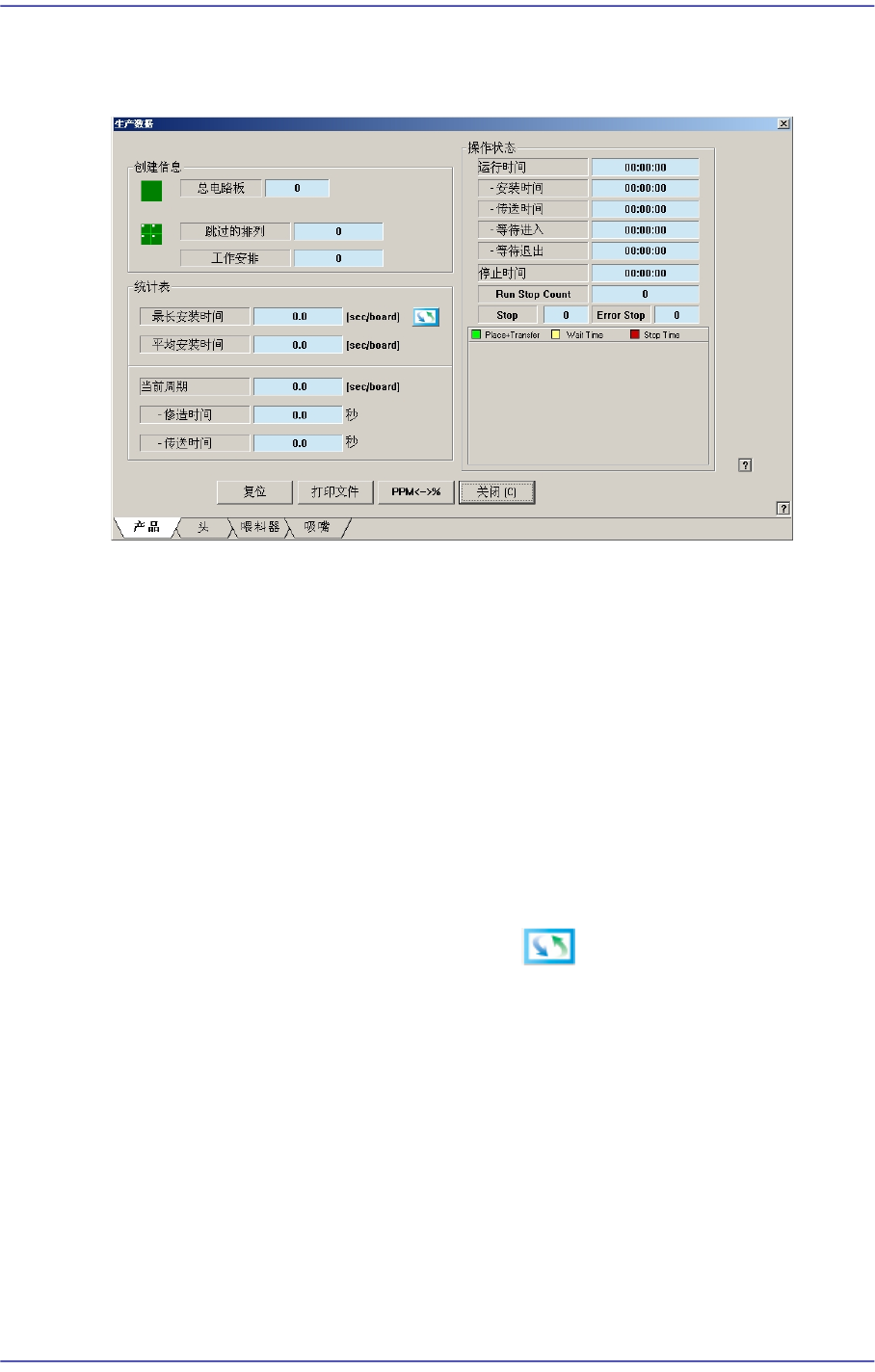 显示与贴装时间有关的信息。点击右侧的 按钮则显示各个不同形态的信