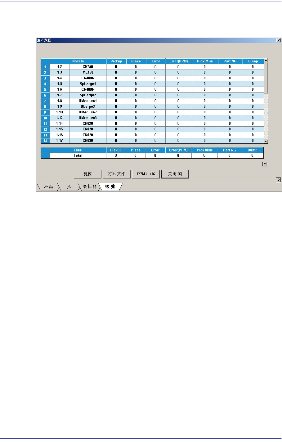 吸嘴无法贴装部件时的故障用PPM单位显示。