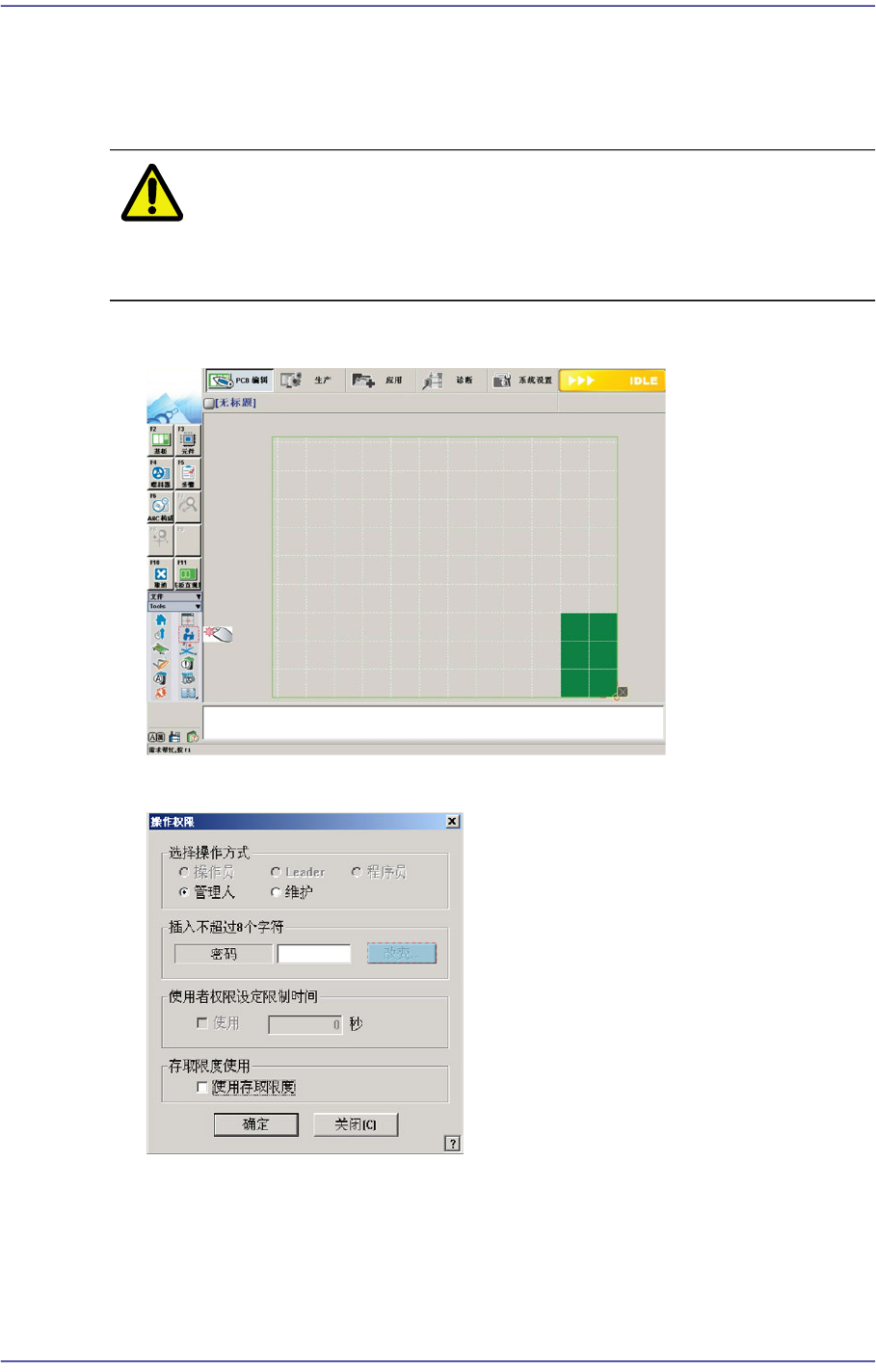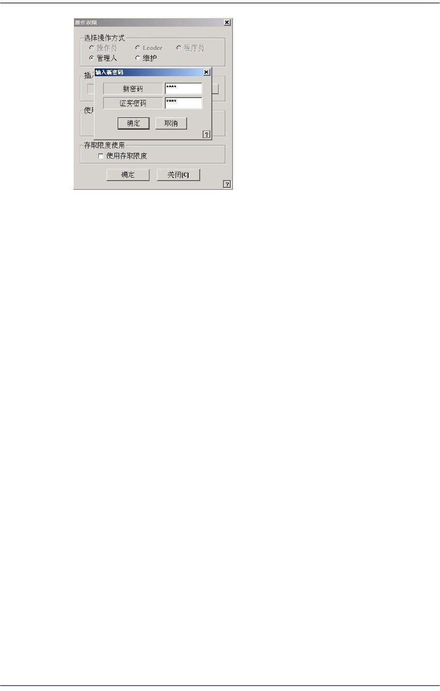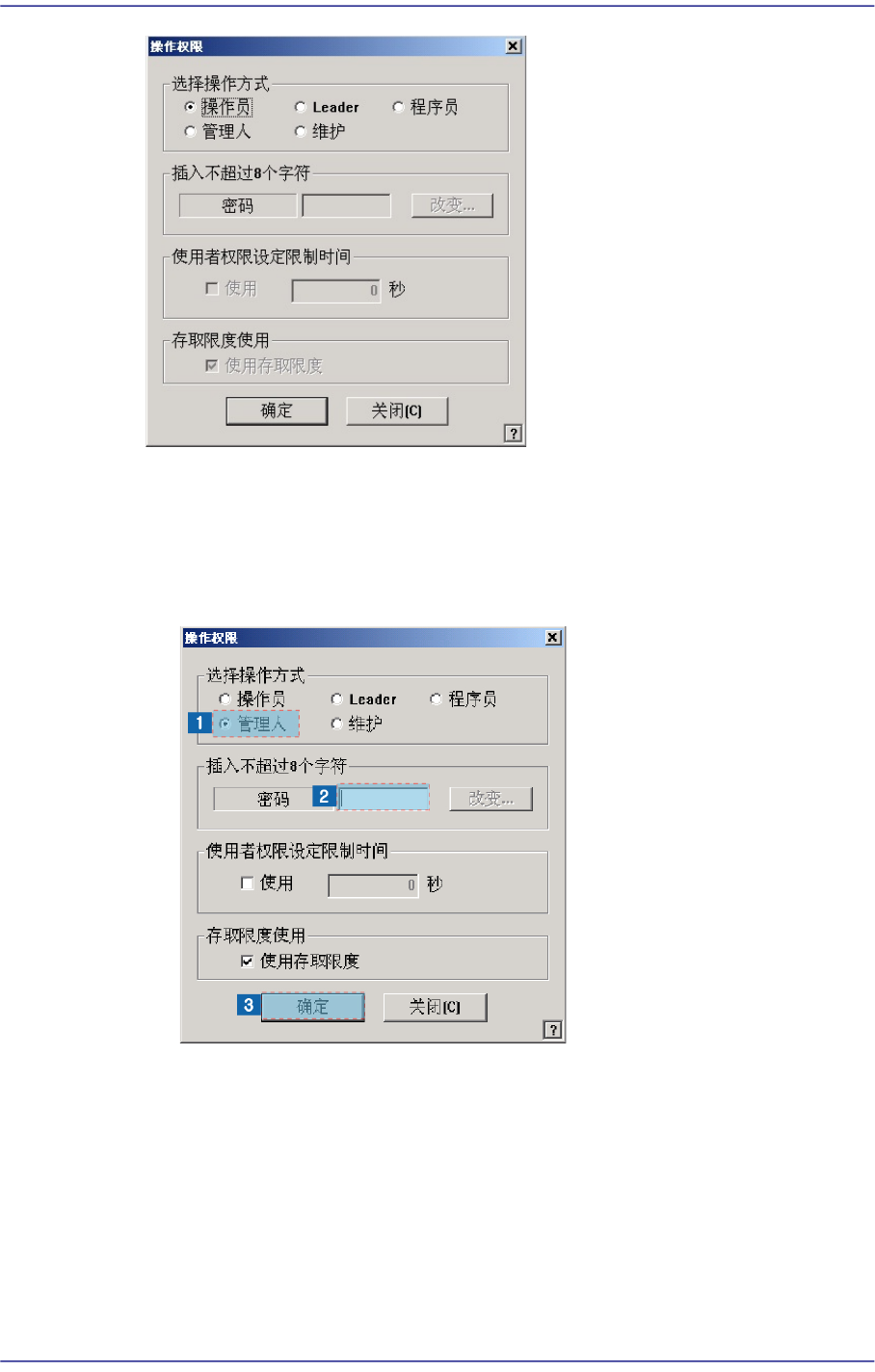 注 意 请勿与其他用户共享程序员方式及管理员方式的密码。 无权限