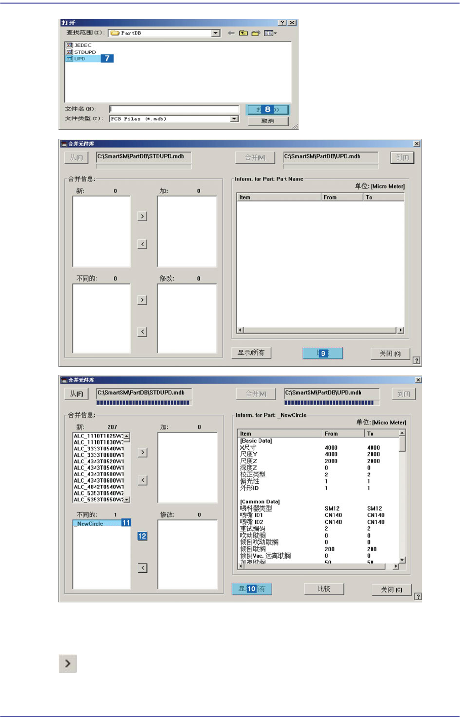 单击>按钮在〈Add:〉目录框或〈Modified:〉目录框添加要合并的项目
