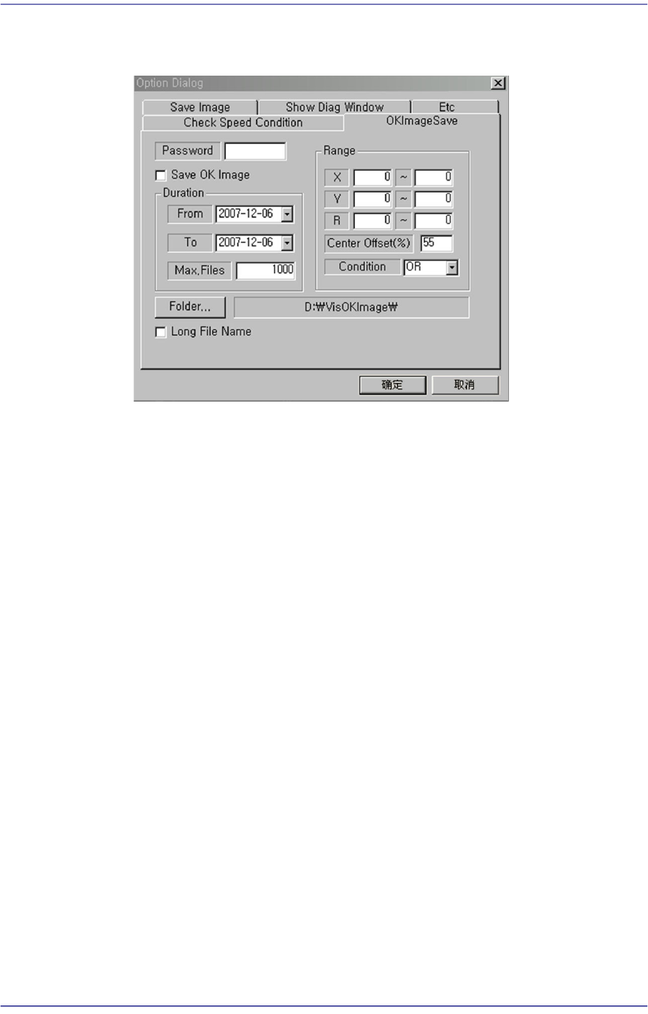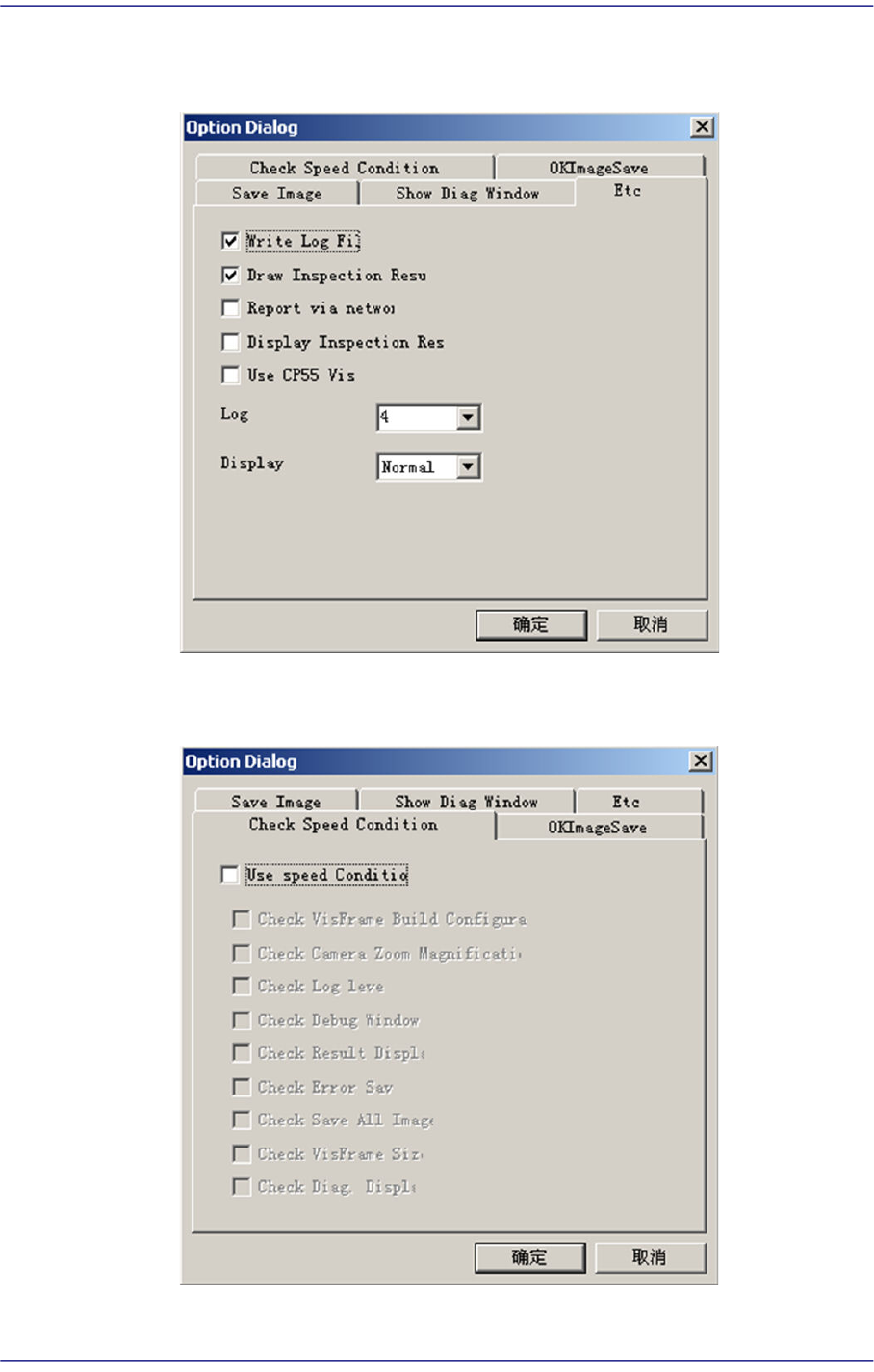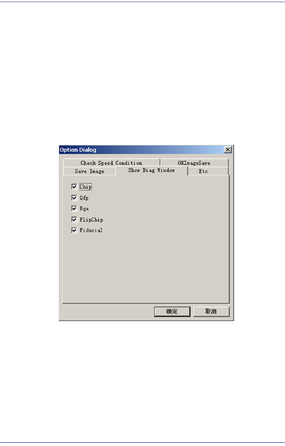 4-6 Fast Chip Shooter SM471 PLUS Admini st rator’s Guide Etc 选项设定画面, 请勿 变更。 Check Speed Condition 确认最佳速度条件与否的功能。 OKImageSave