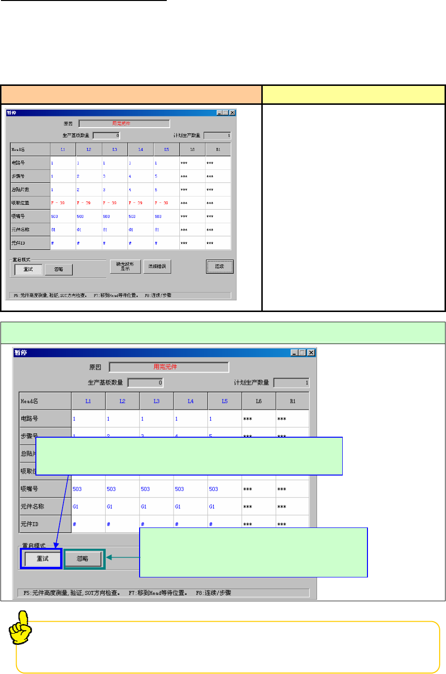 3-1 用完元件 (在操作选项中选中“无元件暂停”时)