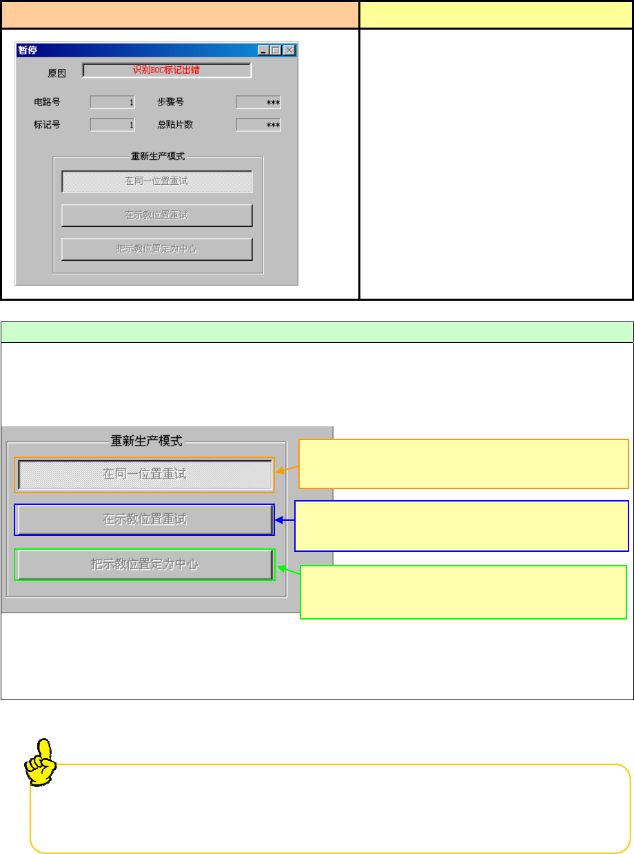 1) 遇到「激光脏污错误」时,贴片头将移动到前面后暂停。