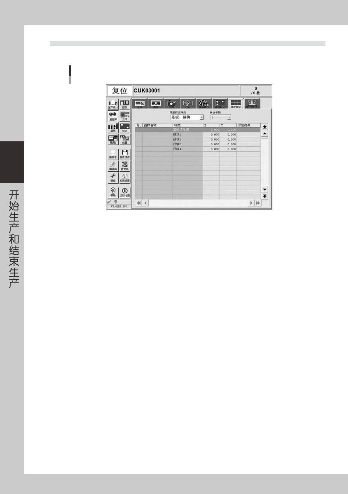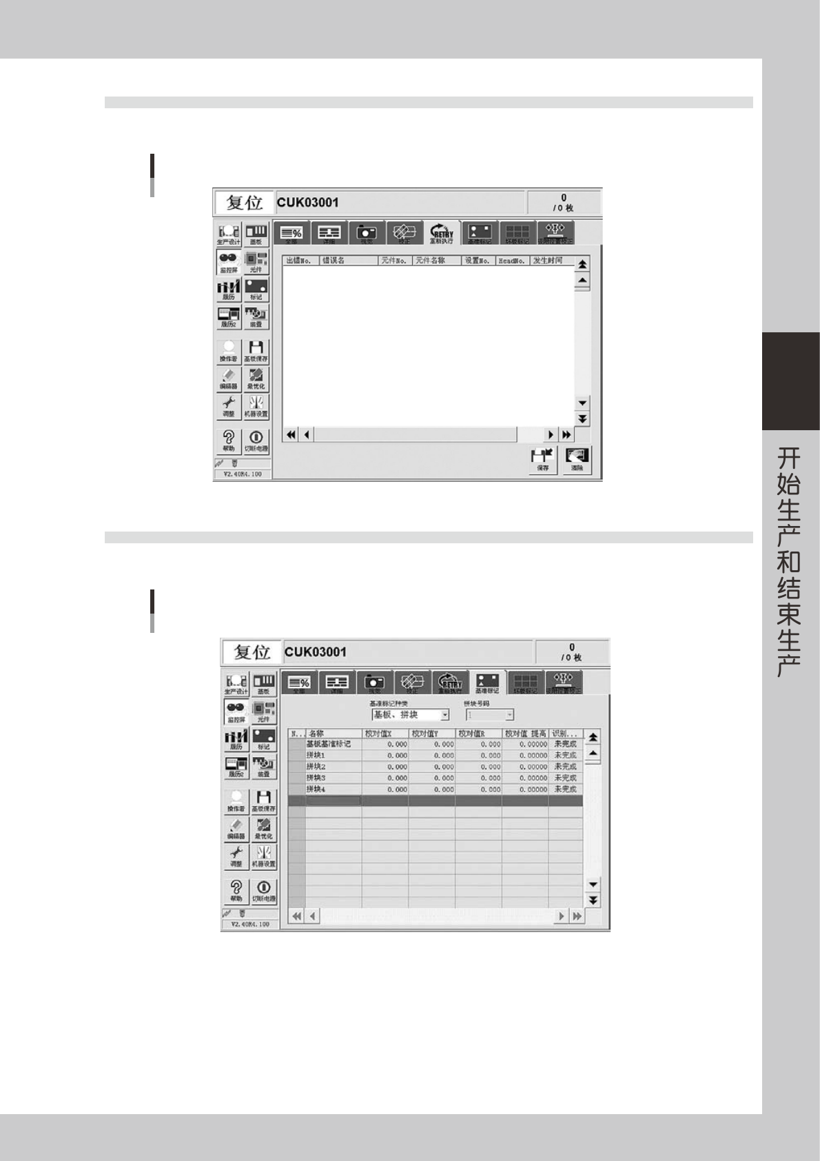OK ∶坏板标记识别已失败,表示进行作业。