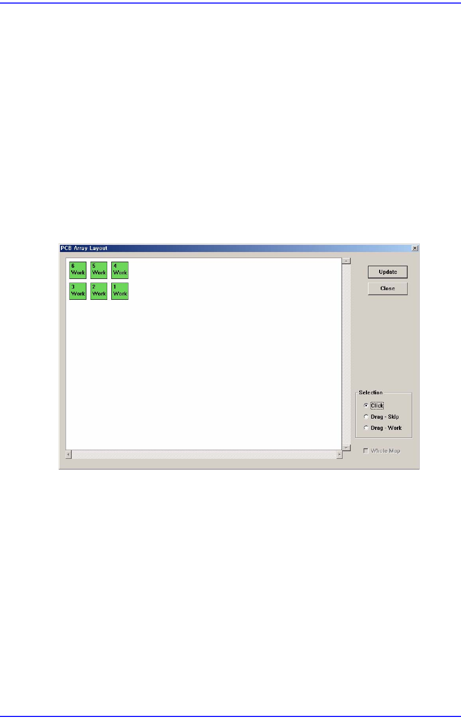 Work 인 소형 PCB를 선택하면 Skip으로 변경되며, Skip인 소형 PCB를 선택하