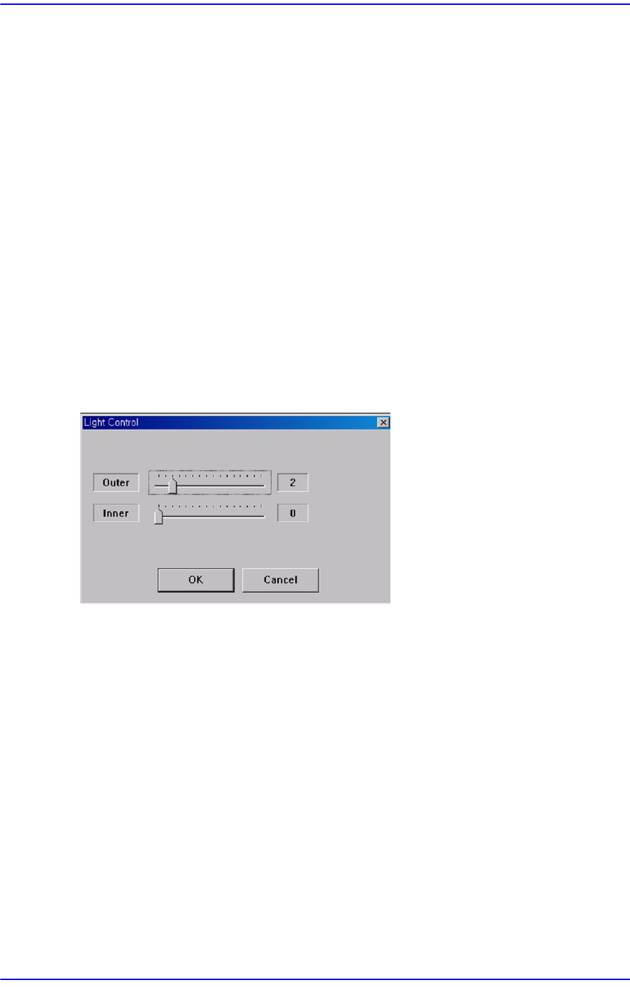 피두셜카메라의 조명을 설정합니다. 이 버튼을 클릭하면 다음과 같은 대화상자