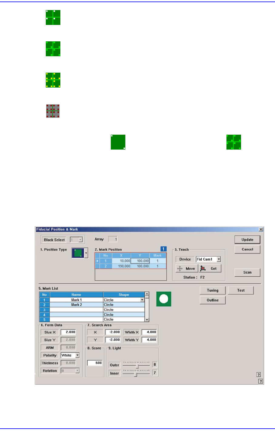 Fiducial Mark 형태를 선택합니다. 선택할 수 있는 형태는 다음과 같습니다.