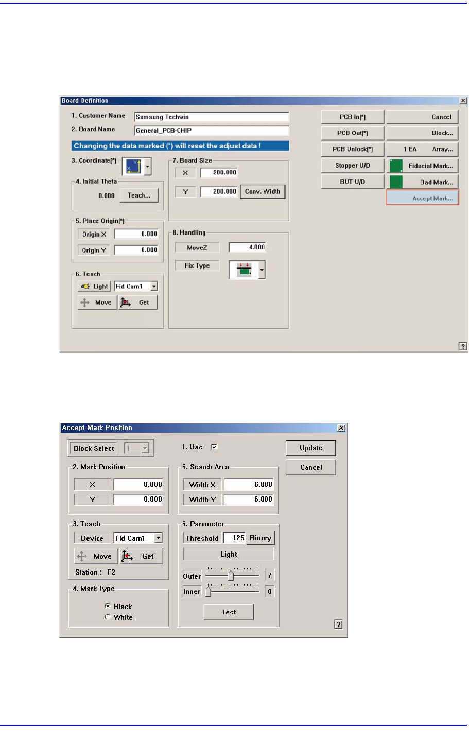 <Accept Mark…> 버튼을 클릭하면 Accept Mark데이터를 편집하는 다음과 같은 대