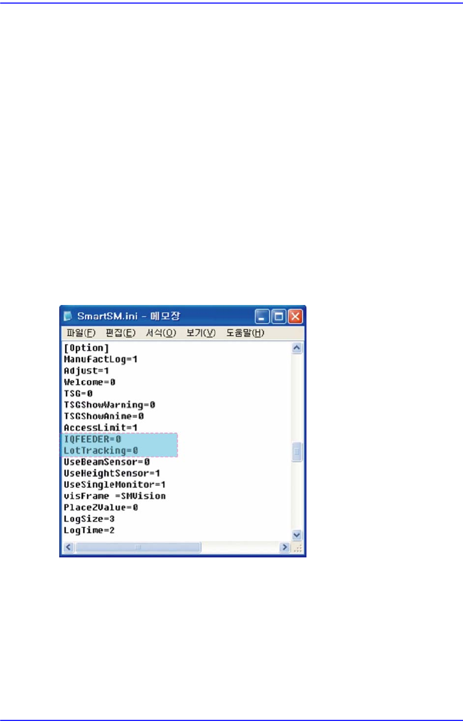 ”C:\SmartSM\bin\SmartSM.ini” 파일의 [Option] 항목에서 IQFEEDER=0,