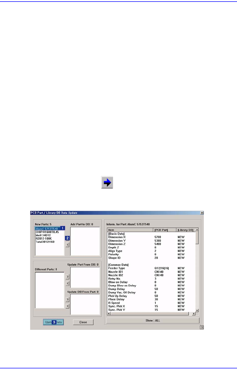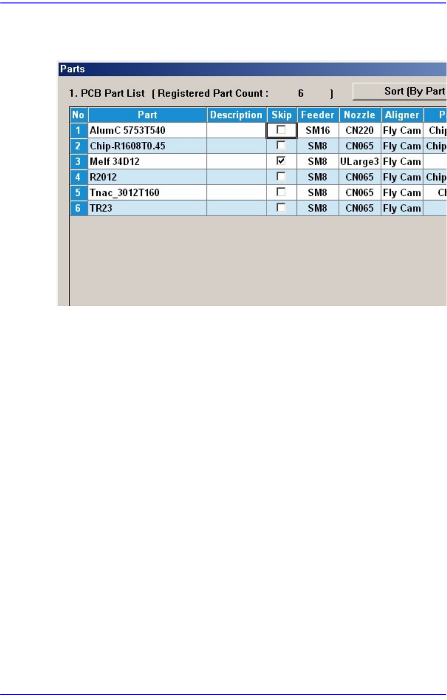 7-2 Samsung Component Placer SM 411F/411FN Administrator ’ s Guide 'Part' 하위메뉴를 선택했을 때의 초 기화면은 다음과 같습니다 . 그림 7.2 “ Parts ” 대화상자 <1. PCB Part List> 영역 현재 등록되어 있는 부품리스트를 표시합니다 . <Part> 열 부품의 부품명을 …