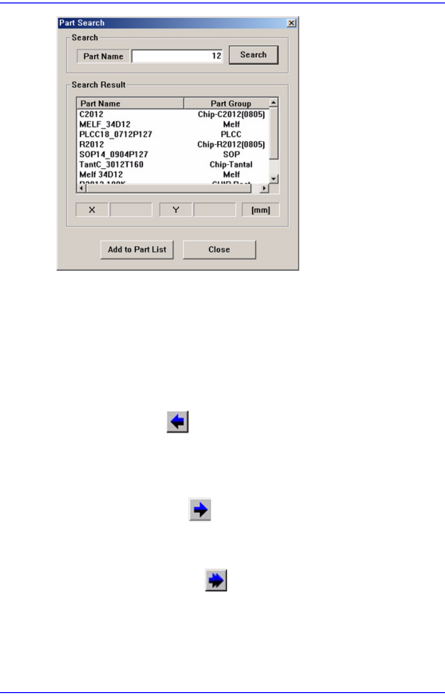 7-5 부품 등록 <Search> / <Search Re sult> 영역 <Part Name> 에디트박스에 찾으려는 부품의 이름을 입력하고 <Search> 버튼을 클릭하면 부품 DB 의 정보를 검색하여 그 결과를 <Search Result> 영역에 보여줍 니다 . <Add to Part List> 버튼 검색결과로 <…